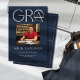 These modern navy blue and grey 5" x 7" graduation announcements feature the word, "Grad," in an abstract design. Insert one of your favourite photos along with your name, graduation year, school, degree and area of focus. The back has a simple grey line design on a navy blue background.