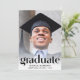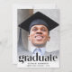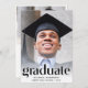 An elegant and stylish graduation announcement and party invitation that features your grad's photo overlayed with "Graduate" written in trendy large type and their name, school and class year in simple typography. On the back, add an additional photo and the party details.