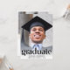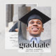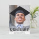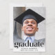 An elegant graduation party invitation that features the grad's photo overlayed with "Graduate" in trendy large letters and their name, school and class year in simple typography. On the back, add an additional photo and your party details.