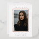 Announce your graduate’s achievement with this elegant and minimalist graduation announcement. Featuring a modern photo layout, clean typography, and black-and-white styling rose gold foil frame, this design is perfect for graduates celebrating the Class of 2026. Fully customizable with your own photo and details. On the back, custom text either for your graduation party or more information. Or delete the text and add another photo.