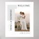 A simple design that is easy to personalise and one your guests will love! Add your favourite vertical photo to this wedding welcome sign. Next you'll personalise with your first names. Lastly add the date. You've just created your unique photo welcome sign for your wedding.