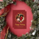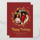 Modern Photo Happy Holidays Script Floral Wreath Gold Foil Holiday Cards features a winter floral wreath in real gold foil surrounding your favourite photo with the text "Merry Christmas" and your personalised message below in modern script typography. Designed by ©Evco Holidays www.zazzle.com/store/evcoholidays
