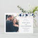 Modern Photo Horizon Blue & White Floral Wedding Invitation