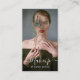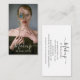A modern trendy style makeup artist business card featuring white modern script typography and a glamourous photo. Add your own photo in a vertical portrait format.