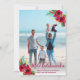 Modern Mele Kalikimaka Christmas Photo Holiday Cards. This pretty holiday card design feature a burgundy red hand lettered typography greeting „Mele Kalikimaka” with red or burgundy tropical floral arrangements at the two corner. At the backing floral arrangements on burgundy colour background. You can personalise the design by replacing the sample text and the full vertical photo template. #3352 If You need help or matching items please contact to me!