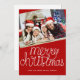 Modern Photo Merry Christmas script holiday card in red and white. The back is left blank to put your own handwritten message