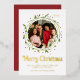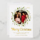 Modern Photo Merry Christmas Script Wreath Floral Gold Foil Holiday Cards features a winter floral wreath surrounding your favourite photo with the text "Merry Christmas" and your personalised message below in modern gold foil script typography. Designed by ©Evco Holidays www.zazzle.com/store/evcoholidays