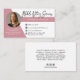 Modern, trendy Notary photo business card features single photo, contact details on a rose gold and white background. Personalise further with your services and social media on the back.