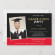Modern Photo Name Gold Black Red Grad Party Invitation
