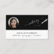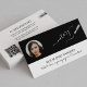 Modern script professional legal certified notary attorney at law consultant custom personalised black and white (changeable colours) business card with elegant calligraphy and pens. +++++++++++ Easy to personalise with your photo and your automatically generated scanning QR CODE to your website or social media on the back.