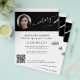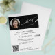 Modern trendy script professional legal certified notary attorney at law consultant custom personalised black and white promotional flyer with elegant calligraphy and pens. +++++++++++ Easy to personalise with your photo and your automatically generated scanning QR CODE to your website or social media on the back.
