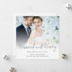 Modern Photo Overlay Married and Merry Christmas. Available digitally or printed. The main heading is in a stylish set script. Easily personalise with your greeting and names at the bottom and replace the photo with your favourite wedding photo. A gradient is overlaid on top.