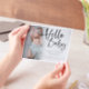 Modern Photo Overlay Script Birth Announcement.  Hello Baby is in stylish modern set script and the rest of the words you can easily personalise. Vellum translucent invitations offer a refined and modern design that can be standalone or layered over a background card for an extra special touch. Perfectly versatile, these overlays pair beautifully with background designs such as photos, floral graphics, or bespoke artwork. PLEASE NOTE: This listing is for the vellum overlay only. Background cards are sold separately.