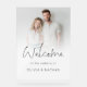 Modern Photo Overlay Modern Script Welcome to Wedding. Minimalist style to greet your guests on stylish acrylic. Simply replace the sample photo with your own which is behind a graduated tinted layer where the text is partially overlaid onto it. Welcome is in a stylish set script and the rest of the text you can easily personalise.