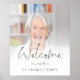 Modern Photo Overlay Welcome to Retirement Party. Simply replace the sample photo with your own and personalise name and occasion. Welcome is in a set elegant script.