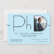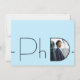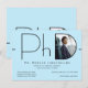 A modern photo PhD graduation party invitation with a light blue and black scheme. Celebrate your being PhDone with this stylish invitation. Simply add your photo & information, add this invitation to your cart, and celebrate this major accomplishment.