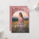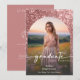 Celebrate in style with this glam, modern, and artistic graduation announcement—designed with a fun flare that's all about you. Featuring your favourite photo in an arch shape beneath a softly darkened and highlighted overlay, the front captures your glow and the moment. The background features a sparkling rose pink glitter graphic. Flip it over to find all your personalised details displayed on a rose pink background that’s effortlessly chic. It’s the perfect way to share your big news with flair! This design looks best with photos that include complimentary dusty pink, rose, cream or white backgrounds. Created by Simply Farmhouse Press.