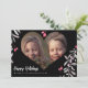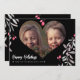 Simple minimalist elegant trendy black and white handwritten script Happy Holidays custom photo winter holidays Christmas card with delicate pink and grey holly berry branches. Easy to personalise with your photo (heart shape), text, and signature.