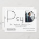 A modern photo PsyD graduation party invitation with a black and white scheme. Celebrate your being PsyDone with this stylish invitation. Simply add your photo & information, add this invitation to your cart, and celebrate this major accomplishment.