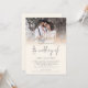 Modern Photo QR Code Script Cream Wedding Invitation. With a QR code to your wedding website on the back so your guests can RSVP and see all the details online without the need for separate enclosures. Your QR code will be automatically generated to update the sample code in the design, when you simply change the sample URL in the template with your own wedding website URL. An informal set typography in black for the main heading the Wedding Of complementing the rest of the text which you can easily personalise. Replace the sample photo with your own favourite.