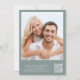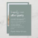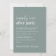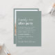 Minimal modern sage green all-in-one wedding reception invitation featuring "Happily Ever After Party" in a blend of a contemporary white script and bold white lettering, and your names in a signature-like script. On the back, upload your photo and input your wedding website address to create a QR code that your guests can scan to RSVP online.