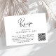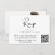 Modern wedding RSVP card that features "Rsvp" in a chic script. Input your wedding website address to create a QR code that your guests can scan to RSVP online. The back features your photo overlayed with your first names and wedding date joined together by a heart.