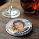 A simple, minimal photo with text around the edge. This makes a great gift for a family member such as Grandma. The photo includes a darkened border so that the text will show on any photo. If you believe that makes your photo too dark, simple go to the advanced design area, choose the coaster design, and delete the gradient covering the photo.