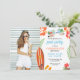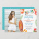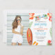 Modern Photo Retro Tropical Pool Party Birthday Invitation with hibiscus, sunglasses, flip flops and a surfboard make this the perfect invitation for any luau or tropical pool party invitation. Personalise the text for any event!