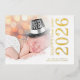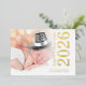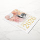 Modern Custom Photo Rotated Text Happy New Year 2026 Luxury Real Foil printing in either gold, rose gold or silver for Happy New Year 2026 which is rotated to the right hand side, and add your favourite photo to the left to replace the sample picture. Your names are also printed in real foil.