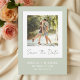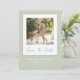 Celebrate your upcoming wedding with this elegant and modern save the date card, designed to highlight your love story with simplicity and charm. The front features a customisable photo framed in white and set against a soft sage green background, creating a serene and romantic aesthetic. Personalise with your names, date, and location for a meaningful, polished announcement. The back provides space for additional customisable text, perfect for sharing the details your guests need. A beautiful choice for couples who love minimal design, soft earth tones, and a timeless, personal touch.
