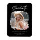 Modern photo typography graduation announcement magnet. Featuring stunning script text and textured effect photograph. Black and white colour can be customised.
