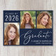 Simple Class of 2025 dark navy blue photo graduation announcement featuring a 3 picture collage and "Graduate" in an elegant white script. Add the grad's name, class year and school or university in modern white typography.