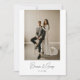 Modern Photo Script Elopement Wedding Reception Invitation. Customise this minimalistic, white wedding elopement announcement with a favourite wedding photo, and bride and groom names in script lettering. Personalise further with your elopement message, and wedding reception invite info on the back for friends and family.