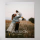 A simple and modern customisable piece of wall art, for a family photo, and your family name at the bottom.