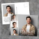 Minimal modern graduation announcement postcard featuring the graduate's photo overlayed with a strip of three smaller square photos and "Graduate," their name, school and class year in simple white typography. On the reverse side, add an additional photo and personalised message.