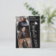 The Modern Photo Strips Black Graduation Announcement Postcard is a modern mix elegant design. With a black colour scheme, it features photo collage film strips, a graduation hat, and stylish calligraphy. The card captures the essence of graduation, symbolising success and celebration. The film strips evoke nostalgia, showcasing essence of the graduate's joy. The graduation hat adds tradition, while the calligraphy adds a personal touch. This visually striking card appeals to graduates and their families, serving as a cherished keepsake. Its modern design and thematic elements make it a fitting tribute to the graduate's accomplishments.