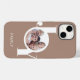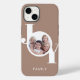This modern photo phone case features a single photo and the word JOY in stylish typography on a taupe beige background.