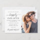 Modern wedding save the date announcement featuring your photo and "Happily Ever After" in a mix of simple typography and a stylish script with swashes. Personalise your save the date details and add your names in a signature-like script. On the back, your names and wedding date are joined together by a heart.
