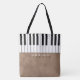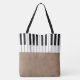 Keyboard and name on old brown background... a super stylish tote with a modern design to pleasure any pianist.