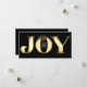 Modern Pine Black And Gold Metal Joy Business Logo Holiday Card! This is a beautiful holiday card idea for your business to send out during the holiday season. The design is simple but elegant, featuring the "Joy" text with a faux gold metal digital effect. Perfect to show your appreciation to your customers and partners this Christmas holiday. You can add your logo.