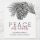 Design features a hand drawing of a pine branch with pinecone, "peace on earth", business name in modern and script font.
