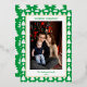 Share holiday greetings with these photo Christmas cards featuring your favourite photo set on a modern and minimal background of pine tree on contrasting earth red gold foil. An editable message area lets you customise your holiday greeting in modern lettering. Add your family name or names beneath.