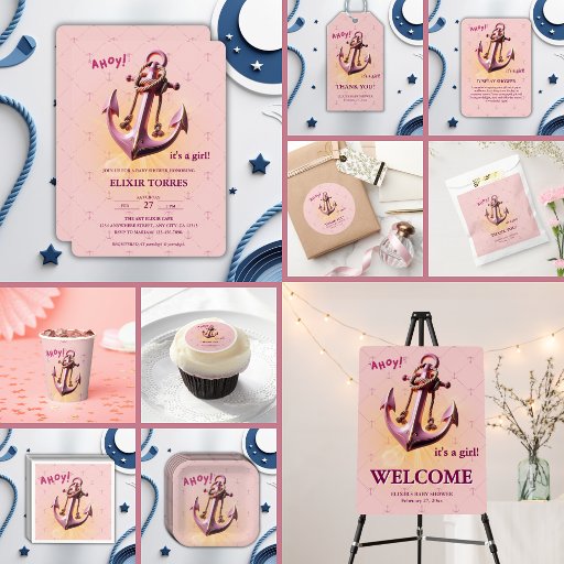 Modern Pink Ahoy! Anchor Nautical Baby ShowerDesigned by Elixir Torres