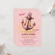 Modern Pink Ahoy! Anchor Nautical Baby Shower Invitation