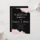 The words "party", "engagement" and the couple's names are highlighted in a playful bubble letter font that perfectly matches the pink watercolor gradients. This attention to detail makes the invitation truly unique and special. The combination of the bold black and the soft pink creates a beautiful contrast that is sure to impress all of your guests.