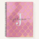 This notebook features a gold and pink glittery cover with a monogram script design, perfect for those who love girly and glamourous aesthetics.