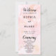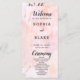 What adds a touch of enchantment to this wedding program are the ornate script fonts used for the words "Welcome," "Ceremony," and "Wedding Party." These decorative elements infuse the program with a sense of celebration and romance, perfectly contrasting with the simplicity of the block font. The interplay between the elegant script and the straightforward text creates a harmonious balance, capturing the essence of modernity and timeless charm.