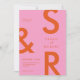 Modern Pink and Orange Monogram Wedding Invitation. Features bold typography and minimal graphic design. Personalise text with all the details of your special day.