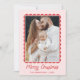 Send cheerful greetings with this Modern Pink and Red Scalloped Frame Holiday Photo Card. The front showcases your family photo in a red watercolor scalloped frame on a light pink background, giving the design a fun and whimsical feel. “Merry Christmas” appears in a playful handwritten script with your name and year displayed beneath. On the back, add a horizontal photo along with your holiday message, creating a festive card full of personality and charm.
