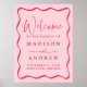 Modern Pink and Red Wavy Frame Wedding Welcome Poster